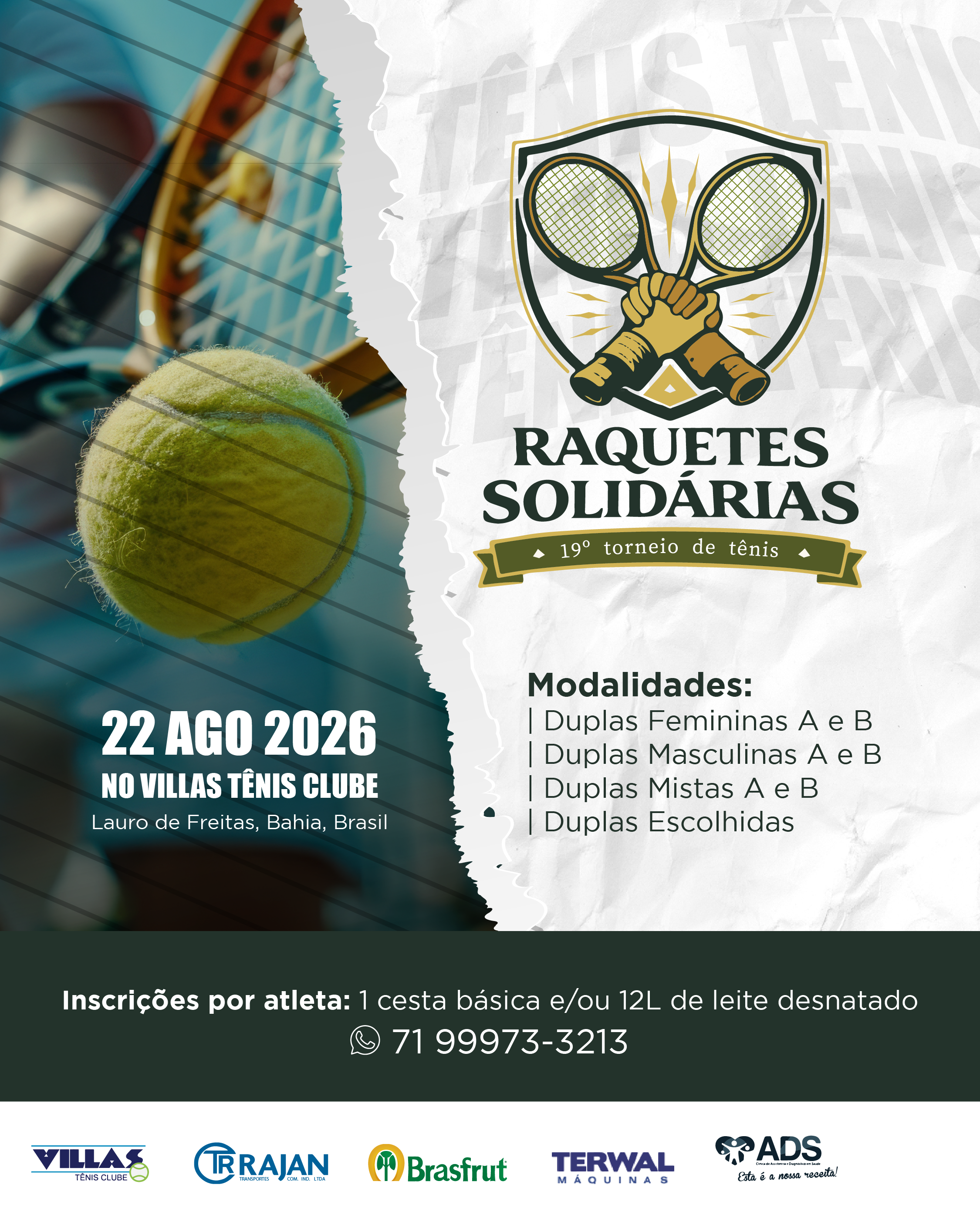 Evento tenístico, que aconteceu em 23 de agosto, reuniu oitenta… Leia mais: RAQUETES SOLIDÁRIAS Nº 18