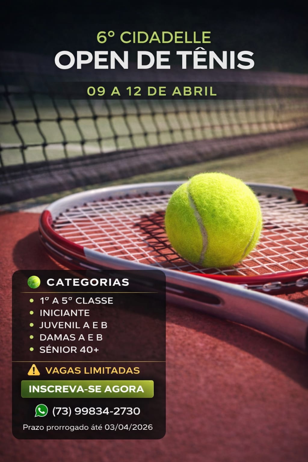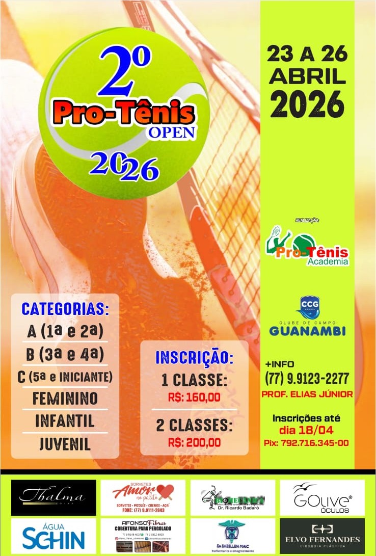 23 a 25 /JANEIRO /2026 Evento tenístico realizado nas quadras… Leia mais: VIII TREE BIES TENNIS OPEN - Profecia baiana?